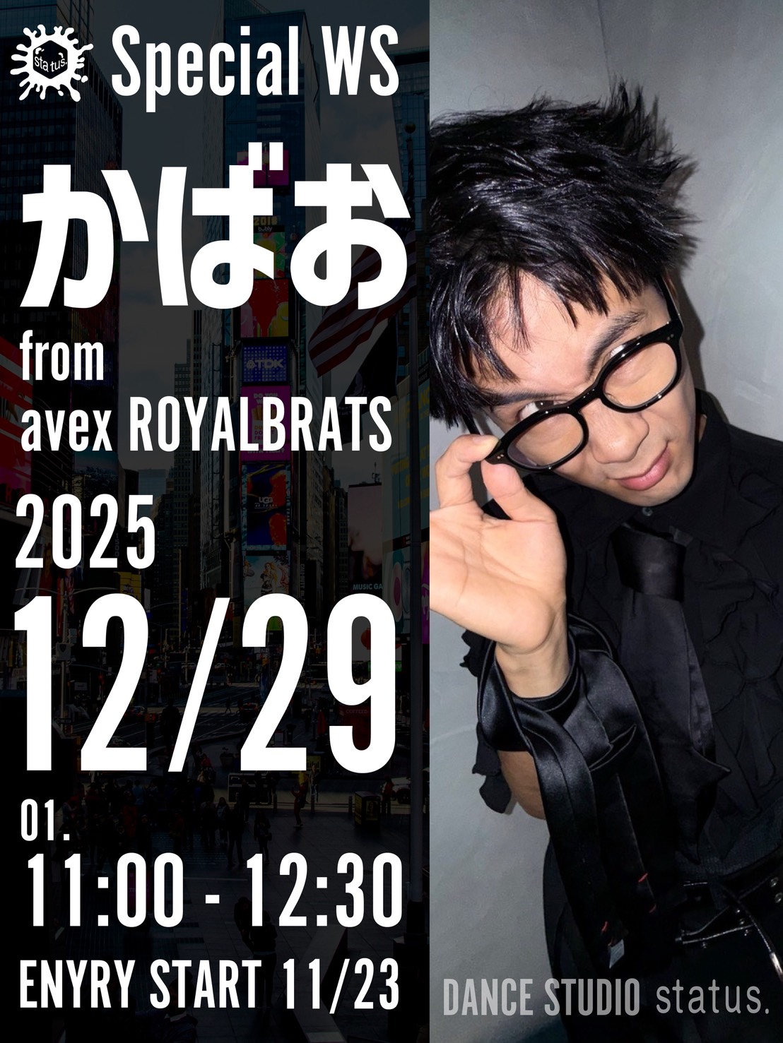 LESSON情報🎎3月 休講情報🎓Workshop情報4/19[sun]⚡️kooouya from GANMI SPECIAL WS⚡️Workshop情報3/22[sun]KOTA MIURA SPECIAL WORKSHOP!!Workshop情報12/29[mon]かばお SPECIAL WORKSHOP!!Workshop情報11/30 SUN 🧢Changyama special workshop🧢Workshop情報🔥Shindy Special Workshop🔥Workshop情報8/10[sun]Sakurako SPECIAL WORKSHOP はじめての方へ こういう理由を解決します! ✓ダンスの経験がない ✓うまく踊れるか不安 ✓どのくらい料金がかかるの? status.に初めて来られる90%の生徒はダンス未経験者 経験者 10% 未経験者 90% 様々なクラスでサポート最初は簡単に楽しく受講できるクラスや、本格的にやりたい方には難易度の高いクラスなど、ニーズに合ったクラスを紹介 県内でリーズナブルな料金設定幼少レッスン 3500円(税別)〜複数クラス受講は更に割引も適用!県内最安値で高い技術のレッスンを受講できます Instagram YouTube
